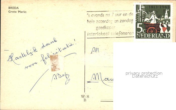 old postcard Breda Noord-Brabant Grote Markt Autos postalisch gelaufen Erhaltung siehe scans