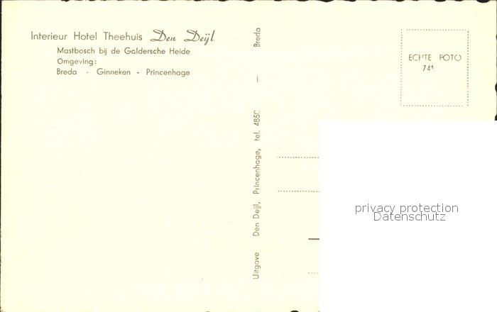 Breda Noord-Brabant Interier Hotel Theehuis Den Deijl Mastbasch postalisch nicht gelaufen Erhaltung siehe scans