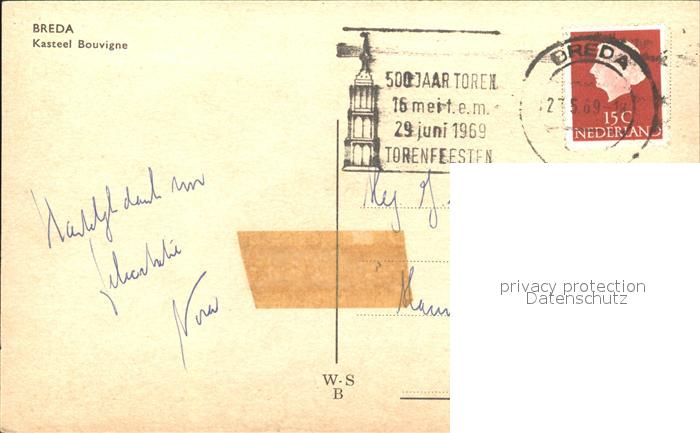old postcard Breda Noord-Brabant Kasteel Bouvigne postalisch gelaufen Erhaltung siehe scans