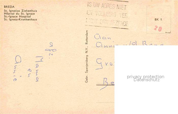 old postcard Breda Noord-Brabant St Ignatius Ziekenhuis Krankenhaus postalisch gelaufen Erhaltung siehe scans [FriedD77]