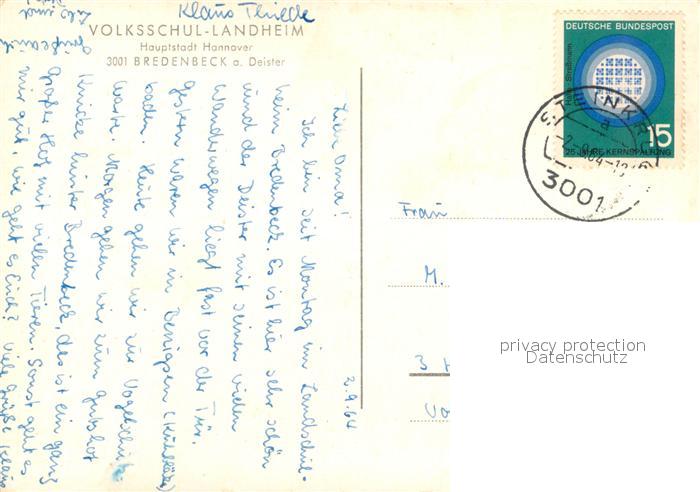 43495591 alte Postkarte Bredenbeck Deister Volksschul Landheim postalisch gelaufen Erhaltung siehe scans [KathaD81] KatCode: 11110003241020