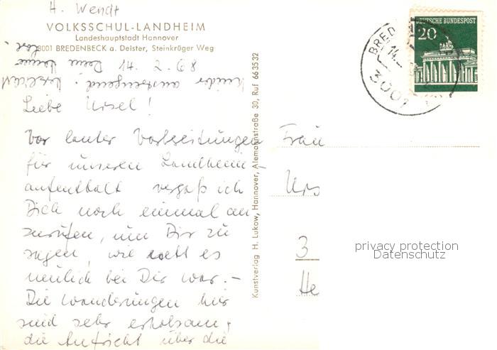 73843584 alte Postkarte Bredenbeck Deister Volksschul Landheim postalisch gelaufen Erhaltung siehe scans [WerneD78] KatCode: 11110003241020