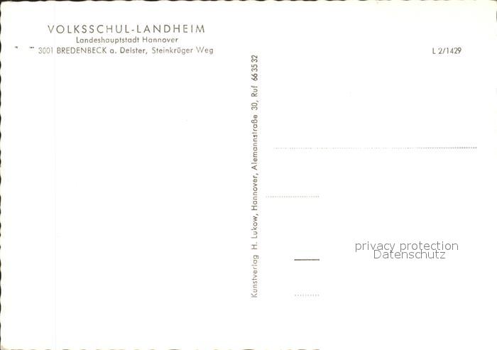 72036882 Bredenbeck Deister Volksschullandheim Hannover postalisch nicht gelaufen Erhaltung siehe scans KatCode: 11110003241020