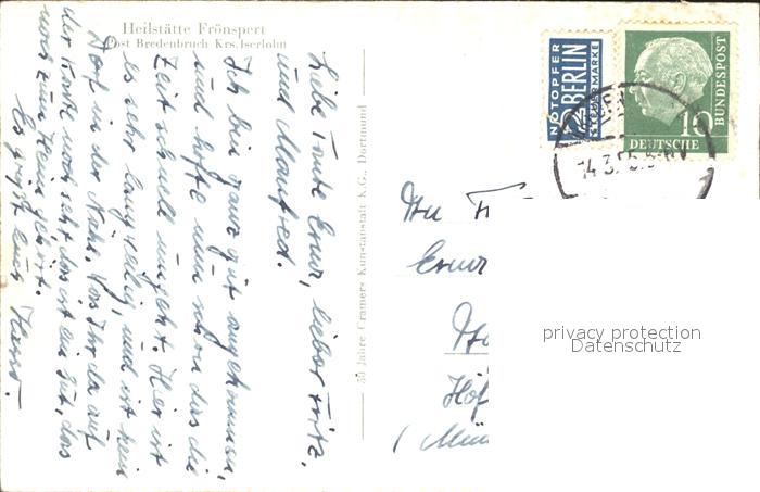 72312744 alte Postkarte Bredenbruch Heistaette Froenspert postalisch gelaufen Erhaltung siehe scans KatCode: 11110005962016