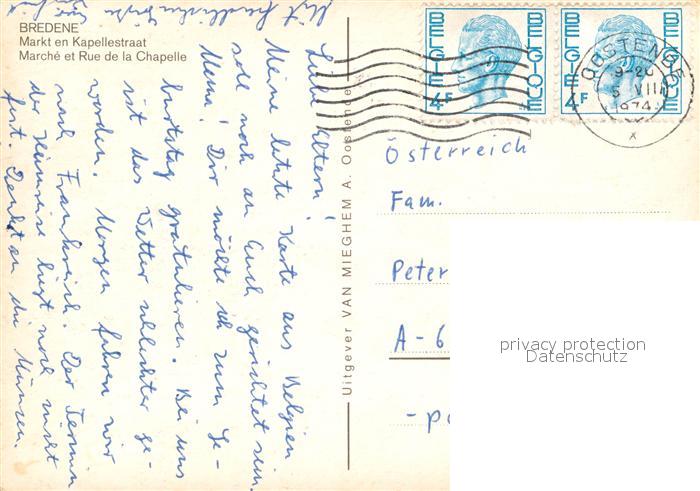 73005430 carte postale Bredene Markt postalisch gelaufen Erhaltung siehe scans [KathaD81] KatCode: 11070035000076