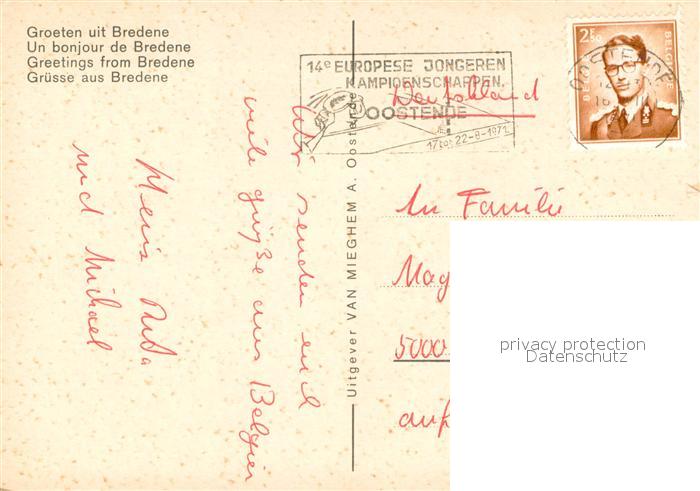 73661842 carte postale Bredene Marktplatz Minigolf Campingplatz Strandweg postalisch gelaufen Erhaltung siehe scans [FriedD77] KatCode: 11070035000076