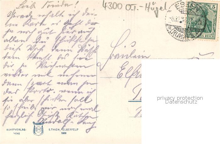 73692796 alte Postkarte Bredeney Blick auf Huegel postalisch gelaufen Erhaltung siehe scans [FriedD77] KatCode: 11110005113000