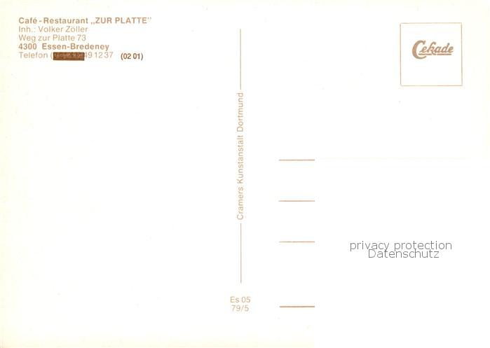 73863605 Bredeney Essen Ruhr Cafe Restaurant Zur Platte Gastraeume Terrasse postalisch nicht gelaufen Erhaltung siehe scans [WerneD78] Wern Katcode 11110005113000