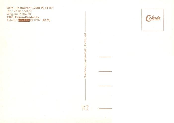 73913972 Bredeney Essen Ruhr Cafe Restaurant Zur Platte Gastraeume Terrasse postalisch nicht gelaufen Erhaltung siehe scans [FriedD77] Frie Katcode 11110005113000