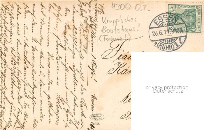 73692795 alte Postkarte Bredeney Krupp’sches Bootshaus Villa Huegel Baldeneysee postalisch gelaufen Erhaltung siehe scans [FriedD77] KatCode: 11110005113000