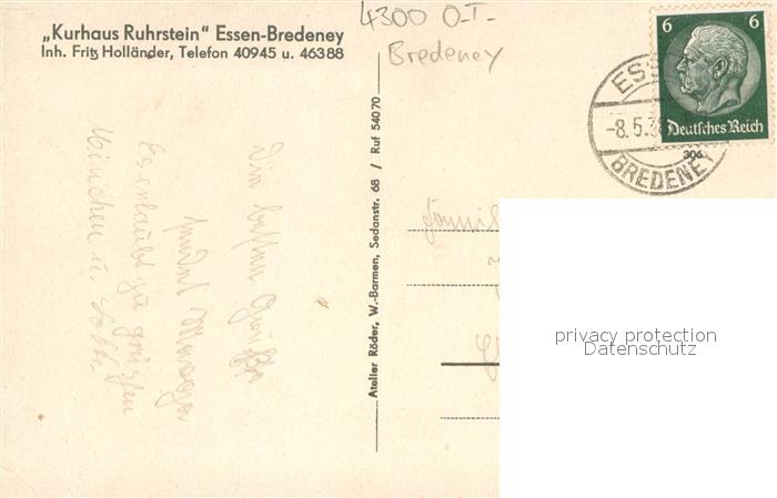 73701964 alte Postkarte Bredeney Kurhaus Ruhrstein Empfangshalle Innen postalisch gelaufen Erhaltung siehe scans [LiesaD40] KatCode: 11110005113000