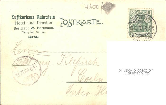 31821631 alte Postkarte Bredeney Luftkurhaus Ruhrstein postalisch gelaufen Erhaltung siehe scans KatCode: 11110005113000