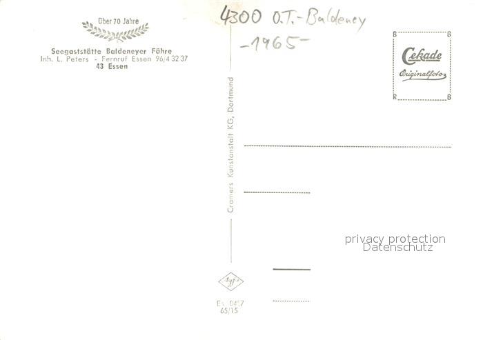 73693853 Bredeney Seegaststaette Baldeneyer Faehre Baldeneysee postalisch nicht gelaufen Erhaltung siehe scans [FriedD77] KatCode: 11110005113000