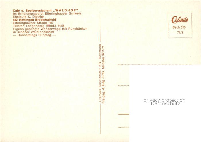 73863597 Bredenscheid Hattingen Cafe und Speiserestaurant Waldhof postalisch nicht gelaufen Fliegeraufnahme Erhaltung siehe scans [WerneD78] KatCode: 11110005954016