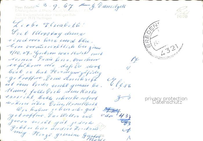72174111 alte Postkarte Bredenscheid Hattingen Haus Friede postalisch gelaufen Erhaltung siehe scans KatCode: 11110005954016