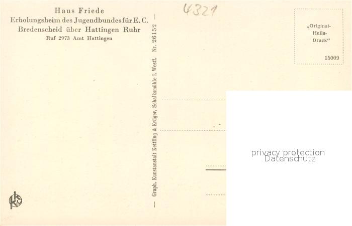73701897 Bredenscheid Hattingen Haus Friede Erholungsheim Schreppinghoehe postalisch nicht gelaufen Erhaltung siehe scans [LiesaD40] KatCode: 11110005954016