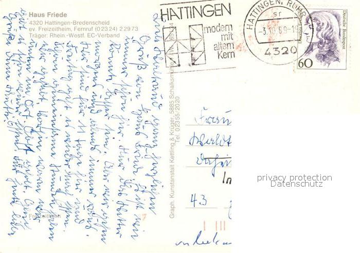 73324378 alte Postkarte Bredenscheid Hattingen Haus Friede ev. Freizeitheim postalisch gelaufen Erhaltung siehe scans [FriedD77] KatCode: 11110005954016
