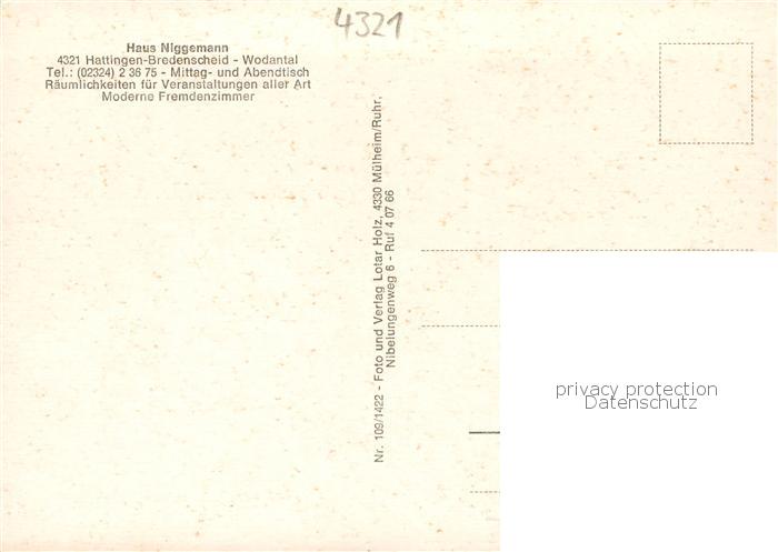 73866799 Bredenscheid Hattingen Haus Niggemann Gaestehaus Hotel im Wodantal postalisch nicht gelaufen Erhaltung siehe scans [FriedD77] KatCode: 11110005954016