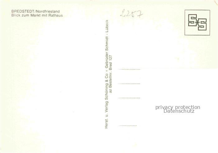 34143006 Bredstedt Nordfriesland Schleswig-Holstein Blick zum Markt mit Rathaus postalisch nicht gelaufen Erhaltung siehe scans [FriedD77] KatCode: 11110001054019
