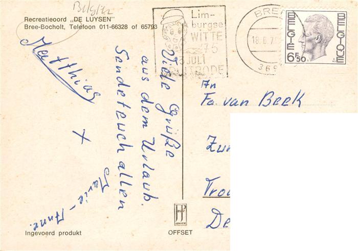 73923055 carte postale Bree-Bocholt Limburg Belgie Recreatieoord De Luysen postalisch gelaufen Erhaltung siehe scans [FriedD77] KatCode: 11070072000059