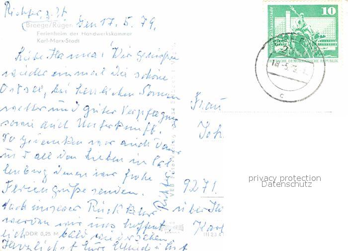 72729666 alte Postkarte Breege Ruegen Ferienheim der Handwerkskammer Karl Marx Stadt postalisch gelaufen Erhaltung siehe scans [FriedD77] KatCode: 11110013061006