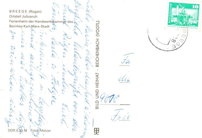73877367 alte Postkarte Breege Ruegen Ferienheim der Handwerkskammer Karl Marx Stadt postalisch gelaufen Erhaltung siehe scans [WerneD78] KatCode: 11110013061006