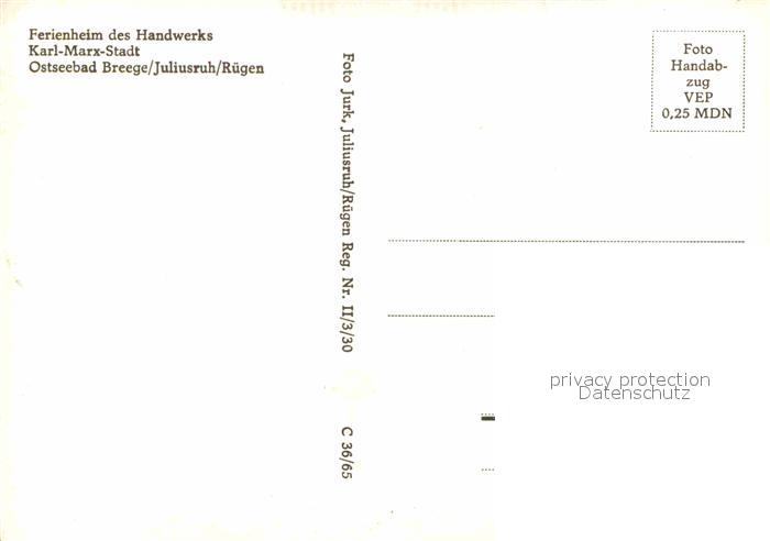 72729545 Breege Ruegen Ferienheim des Handwerks Karl Marx Stadt Handabzug postalisch nicht gelaufen Erhaltung siehe scans [FriedD77] KatCode: 11110013061006