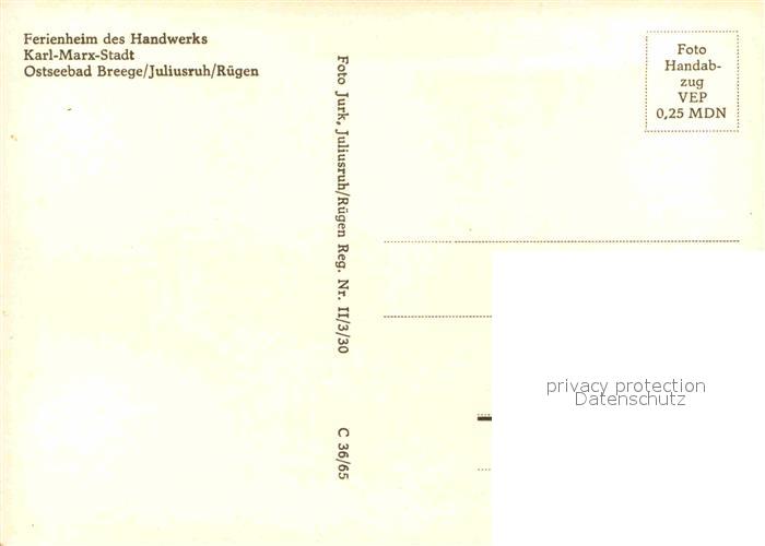 72729544 Breege Ruegen Ferienheim des Handwerks Karl Marx Stadt Strand Handabzug postalisch nicht gelaufen Erhaltung siehe scans [FriedD77] KatCode: 11110013061006