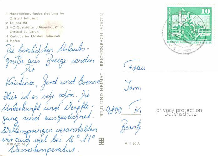 72727409 alte Postkarte Breege Ruegen Handwerkerurlaubersiedlung Juliusruh HO Gaststaette Duenenhaus Kurhaus Hafen Sonnenuntergang Fischer postalisch gelaufen Erhaltung siehe scans [FriedD77] KatCode: 11110013061006