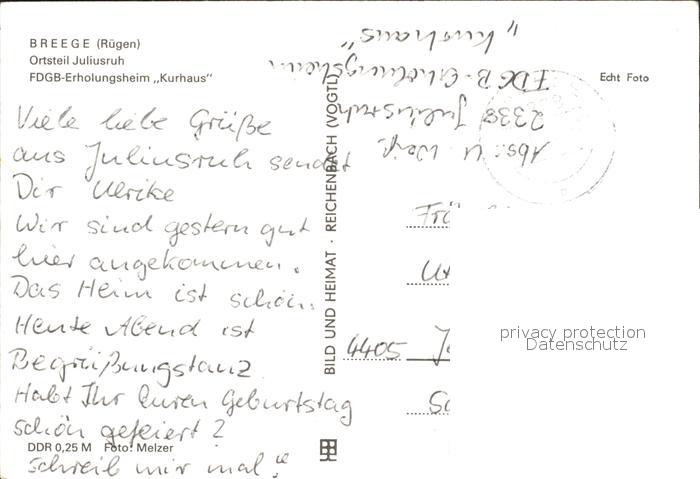 71939442 alte Postkarte Breege Ruegen Juliusruh Erholungsheim Kurhaus postalisch gelaufen Erhaltung siehe scans KatCode: 11110013061006