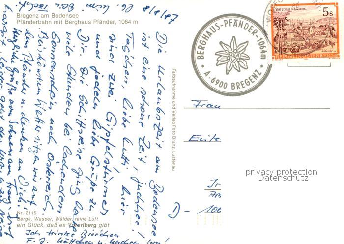 73339333 alte Postkarte Bregenz Bodensee Berghaus Pfaender Pfaenderbahn postalisch gelaufen Erhaltung siehe scans [LiesaD40] KatCode: 11390342080207