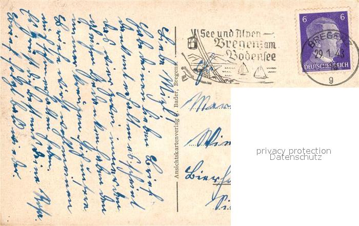 43040612 alte Postkarte Bregenz Bodensee Fliegeraufnahme postalisch gelaufen Erhaltung siehe scans [KathaD81] KatCode: 11390342080207