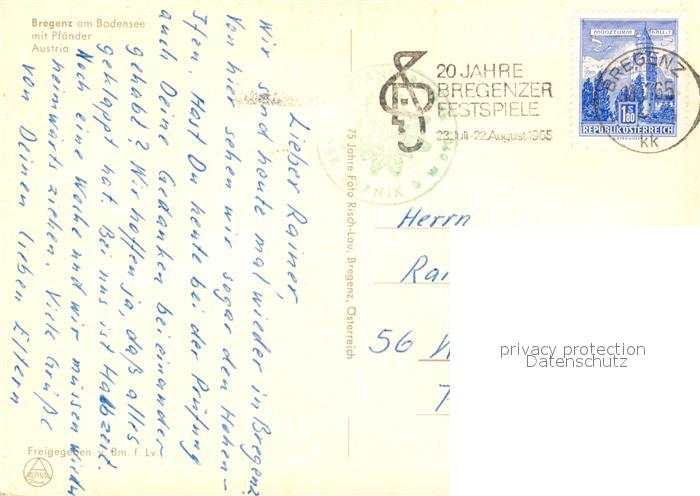 73518656 alte Postkarte Bregenz Bodensee Fliegeraufnahme Pfaender postalisch gelaufen Erhaltung siehe scans [KathaD81] KatCode: 11390342080207