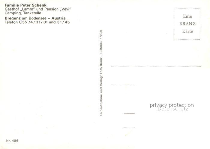 12935052 Bregenz Bodensee Gasthof Lamm Pension Vevi Campingplatz postalisch nicht gelaufen Erhaltung siehe scans [AndreD76] KatCode: 11390342080207