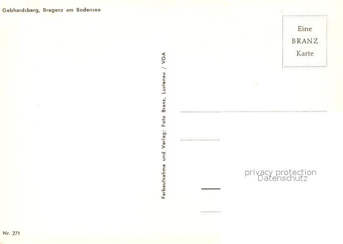 73043165 Bregenz Bodensee Gebhardsberg Panorama Branz Karte Nr 271 postalisch nicht gelaufen Erhaltung siehe scans [FriedD77] KatCode: 11390342080207
