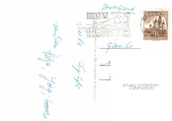 72910812 alte Postkarte Bregenz Bodensee Panorama mit Schweizer Bergen postalisch gelaufen Erhaltung siehe scans [FriedD77] KatCode: 11390342080207