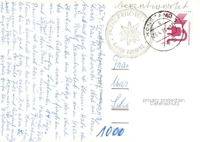 73521282 alte Postkarte Bregenz Bodensee Pf?nderbahn mit Fernsehturm postalisch gelaufen Erhaltung siehe scans [LiesaD40] KatCode: 11390342080207