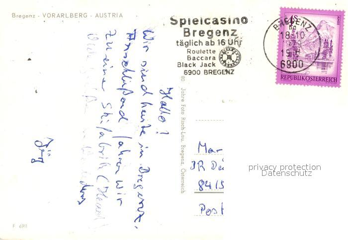 73061668 alte Postkarte Bregenz Bodensee Seeanlagen Bodenseefaehren Promenade postalisch gelaufen Erhaltung siehe scans [WerneD78] KatCode: 11390342080207