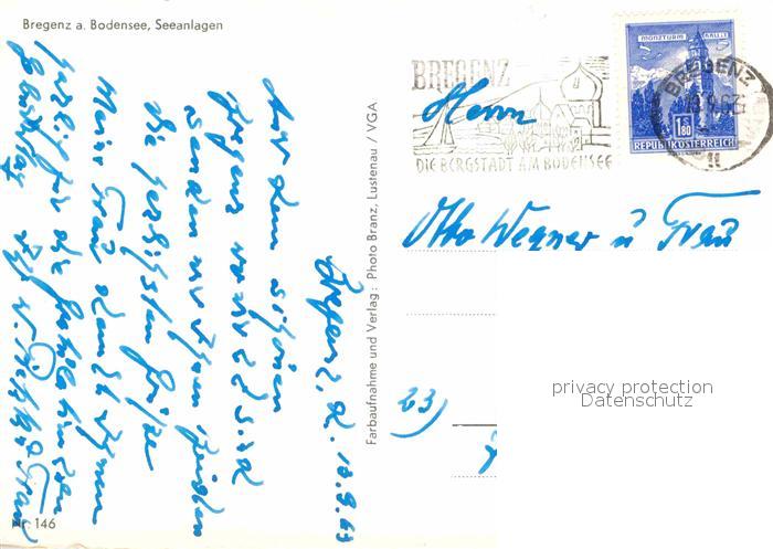 72820288 alte Postkarte Bregenz Bodensee Seeanlagen Promenade Hafen Faehre postalisch gelaufen Erhaltung siehe scans [FriedD77] KatCode: 11390342080207