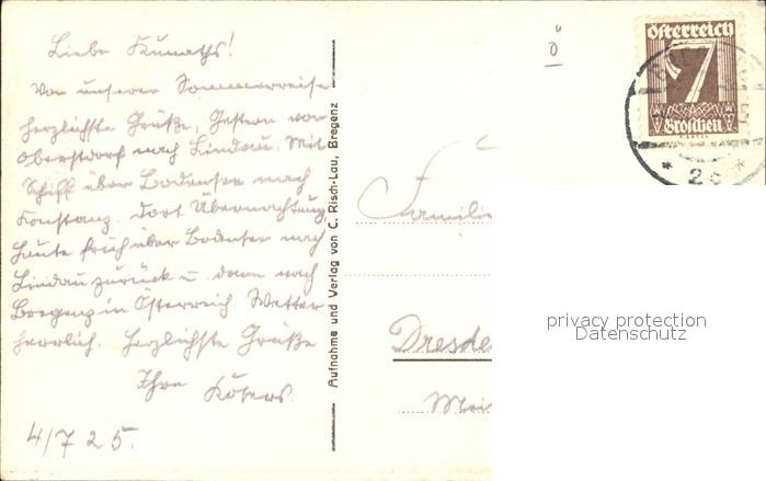 72219891 alte Postkarte Bregenz Vorarlberg postalisch gelaufen Erhaltung siehe scans KatCode: 11390342080207