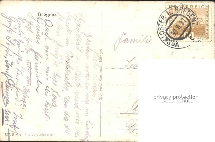 71969291 alte Postkarte Bregenz Vorarlberg postalisch gelaufen Erhaltung siehe scans KatCode: 11390342080207