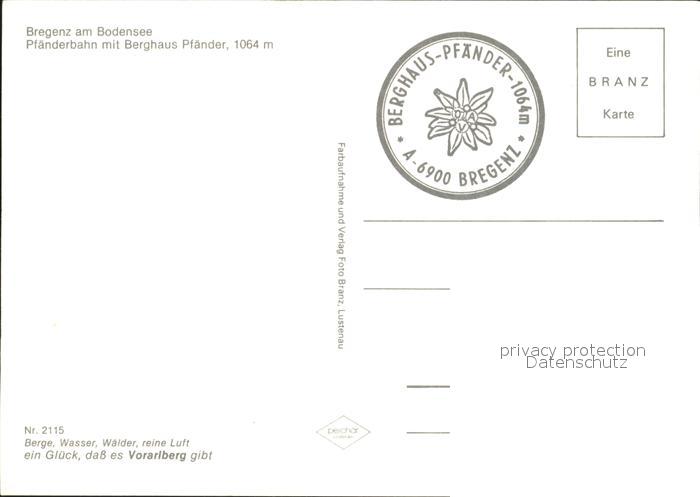 72092239 Bregenz Vorarlberg am Bodensee mit Pfaenderbahn Berghaus Pfaender Terrasse postalisch nicht gelaufen Erhaltung siehe scans KatCode: 11390342080207
