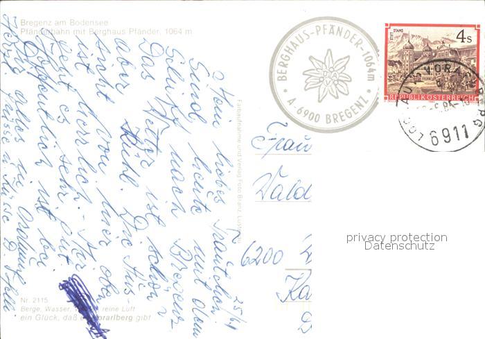 71962534 alte Postkarte Bregenz Vorarlberg Berghaus Pfaender Seilbahn postalisch gelaufen Erhaltung siehe scans KatCode: 11390342080207