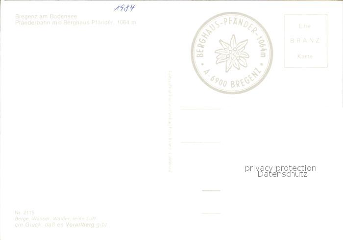 72513446 Bregenz Vorarlberg Berghaus Pfaender Seilbahn postalisch nicht gelaufen Erhaltung siehe scans KatCode: 11390342080207