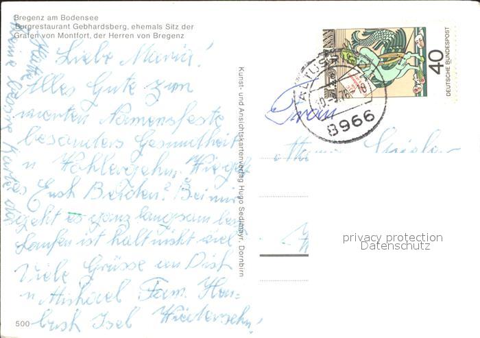 72179939 alte Postkarte Bregenz Vorarlberg Bergrestaurant Gebhardsberg postalisch gelaufen Erhaltung siehe scans KatCode: 11390342080207