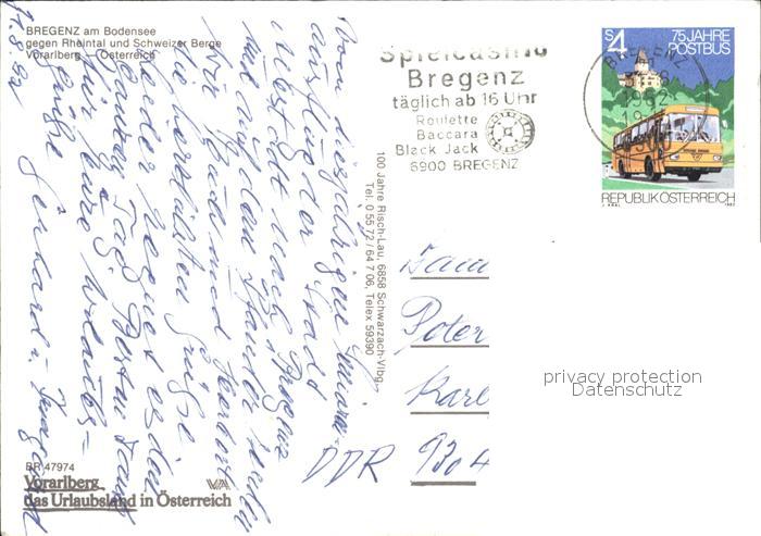 72376611 alte Postkarte Bregenz Vorarlberg Blick gegen Rheintal Bodensee Schweizer Berge postalisch gelaufen Erhaltung siehe scans KatCode: 11390342080207