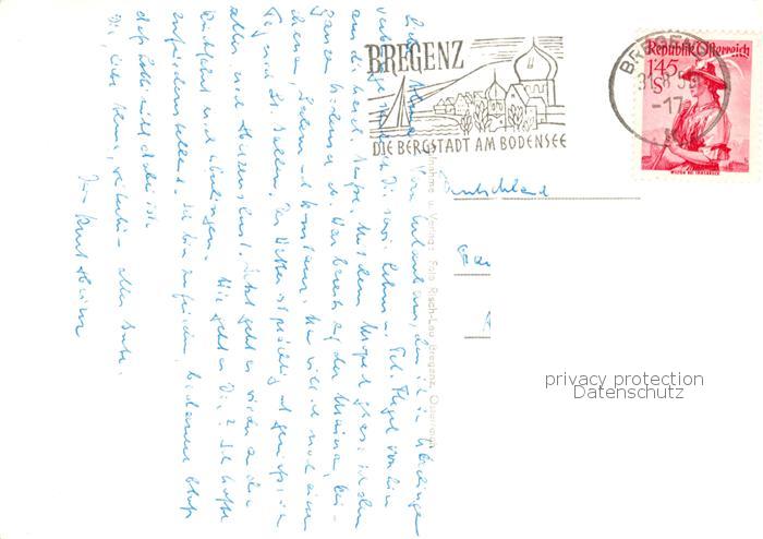 73813674 alte Postkarte Bregenz Vorarlberg Bodensee Panorama Schweizer Alpen postalisch gelaufen Erhaltung siehe scans [FriedD77] KatCode: 11390342080207