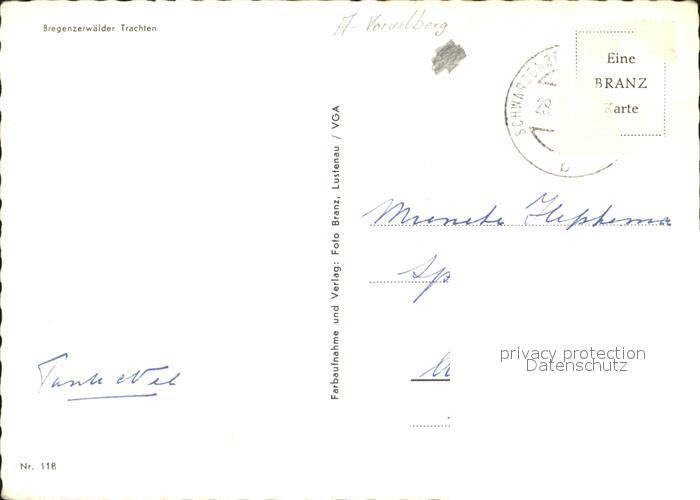 71812599 alte Postkarte Bregenz Vorarlberg Bregenzerwaelder Trachten postalisch gelaufen Erhaltung siehe scans KatCode: 11390342080207