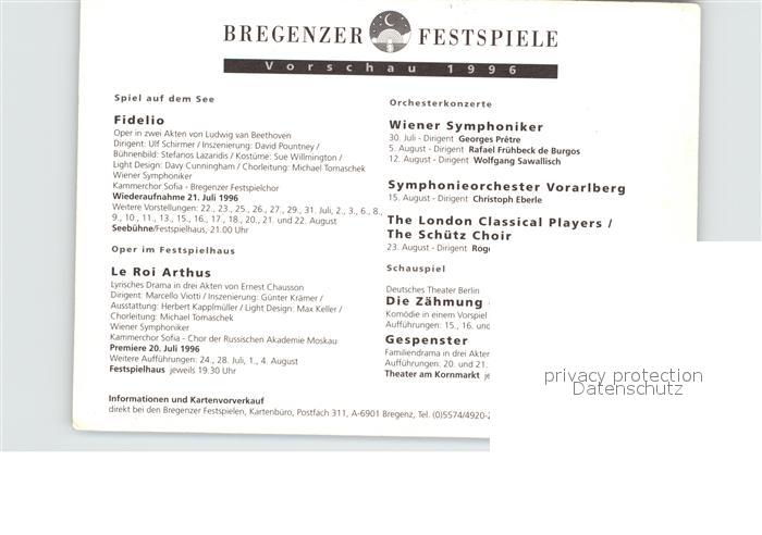 72485980 Bregenz Vorarlberg Festspielbuehne 1996 postalisch nicht gelaufen Keine Postkarte (siehe scan) Erhaltung siehe scans KatCode: 11390342080207