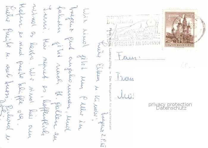 72693133 alte Postkarte Bregenz Vorarlberg Fliegeraufnahme gegen Schweizer Berge postalisch gelaufen Erhaltung siehe scans [LiesaD40] KatCode: 11390342080207